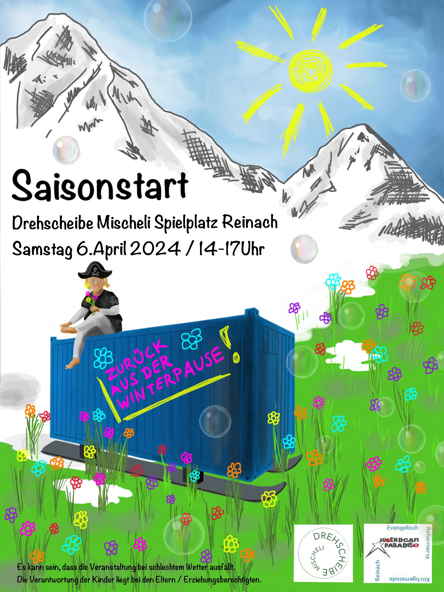 Drehscheibe Mischeli - Saisoneröffnung25.03.2024Saisonstart 6. April 2024 Bei sommerlichen Temperaturen wurde die Drehscheiben-Saison 2024 an einem Saisoneröffnungsevent eingeläutet. Viele Besucher haben den Nachmittag genossen, die Kinder haben mit Freude die neuen Fahrzeuge "eingefahren" und viele weitere tolle Spielsachen ausprobieren können. An den Basteltischen sind viele schöne Kunstwerke entstanden. Dazu gab es feinen Kuchen, Zuckerwatte und Popcorn....