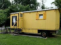 Da keine Isolation verbaut wurde, eignet sich die Nutzung vorwiegend in milderen Jahreszeiten oder an schattigen Standorten. Gegen Kälte hilft ein wenig das kleine, vorhandene Heizgebläse. Bewegt werden kann der Bauwagen nur mit einem Traktor. Er besitzt leider (noch) kein eigenes Bremssystem.