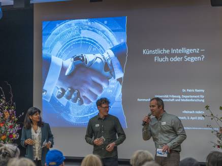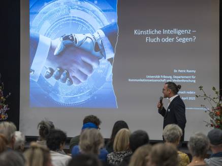 KI -Fluch oder Segen? Die Besuchenden erhielten einen spannenden Einblick zum Thema Künstliche Intelligenz (KI), referiert von Dr. Raemy von der Universität Fribourg (Departement für Kommunikationswissenschaft und Medienforschung).